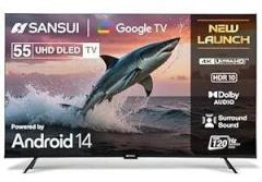 - Sansui 55 Inch (140 Cm) (55) Google With HDR10+, HLG, Dolby Audio, HSR 120Hz Refresh Rate, MEMC, 30W Surround Sound, FloLED Panel JSW55UG23 (Black) Smart Ultra HD TV is available at a best price of ₹31,889 on Flipkart.